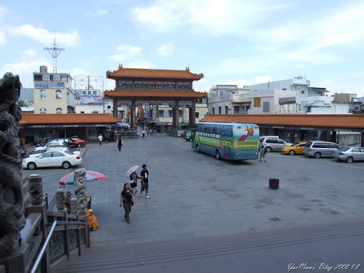 福安宮殿前超大廣場,遊覽車可隨意進出,左方有一大型舞台,右方為休息涼亭,可供眾多香客朝聖拜拜。