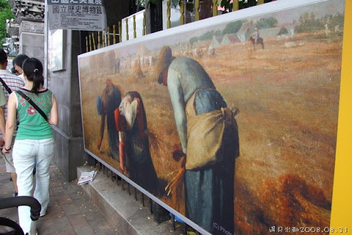 不一會兒,隊伍開始移動了,8點到了,我們也陸續進場,第一次帶堯弟看展覽,人潮又這麼多,只好我顧娃娃車,爸比抱堯弟,只見我推著車滿場亂竄,把車放邊邊,用力擠到《拾穗》與《晚禱》面前,膜拜一番,超感動的,可惜人太多,觀賞品質大大降低。