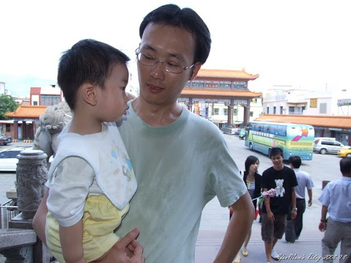 堯爸濕透了。可見天氣相當炎熱,由於不是假日,觀光人潮不多,我們可以盡興拍照、拜拜,不用人擠人,呀虎。