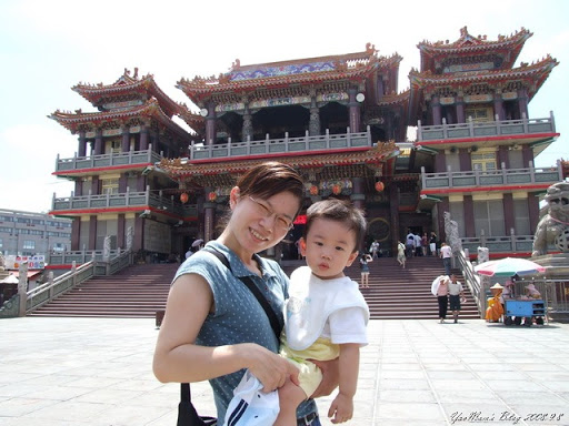 來,堯媽也來拍一張,不過堯媽就沒有香汗淋漓囉~這是全亞洲最大的土地公廟喔~當然要留影一下啦!